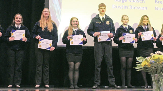 Chapter Degree: OABCIG FFA Chapter Degree recipients were, from left: Bailey Barber, Breah Harms, Allison Hayden, Addison Mohr, Dustin Riessen, Izabelle Rohlf, Alayna Swanger, and Breanne Wilcox.